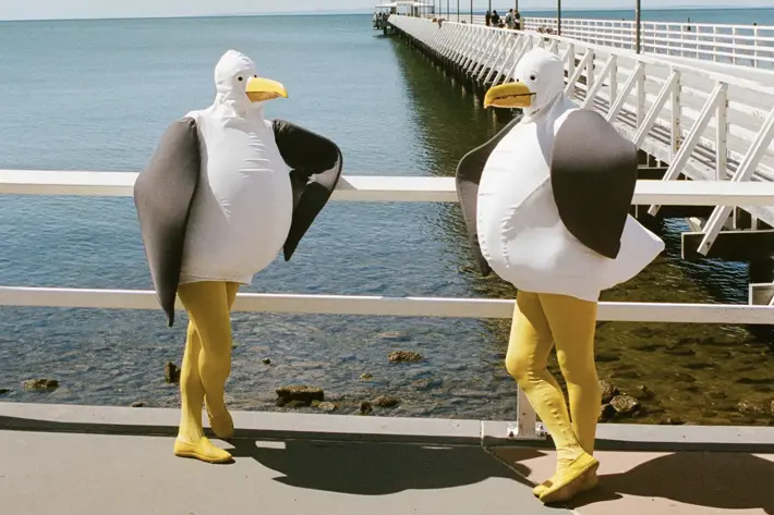 We are an international street theatre company called Surreal McCoy, that perform extensively throughout the UK, Europe and Australia. We specialise in making and performing endearing and engaging roving characters. Not just visual, we are interactive with our audiences, creating beautiful connections and joyful memories. The Giant Seagulls, for all that they’re encased crown to crupper in costume and have no language other than “aawk” are whimsically sublime - picture, if you can, two giant seagulls trying on bobble hats and ballerina skirts…. It’s like Creature Comforts on steroids, only better; for a wonderful blink of time they make the world’s nasty bits disappear. Highly recommended. On a five-star rating I’d give them six. A pair of human sized Seagulls with fully working beaks, these cheeky birds are out and about in search of tasty morsels and mischief! They will be rummaging in bags, sneaking a chip from your plate, strutting about and generally endearing themselves to all. A delightful and engaging roving act that will leave audiences laughing in their wake.